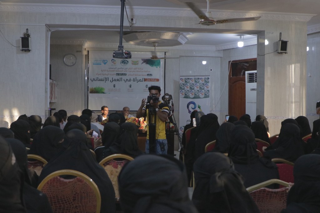 جاء ذلك في ورشة “المرأة في العمل الإنساني” التي نظمناها بالشراكة مع اللجنة الوطنية للمرأة، حيث أوضحت أن نساء حضرموت كان لهن مساهمة كبيرة عند نزوح المدنيين من مختلف محافظات اليمن إلى حضرموت سنة 2015، ورغم كل الصعوبات والمعوقات اشتغلن كمتطوعات بدوافع إنسانية.
