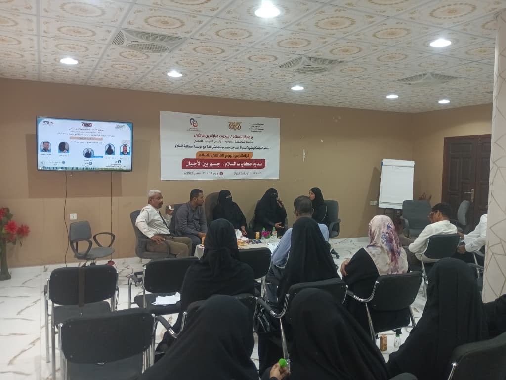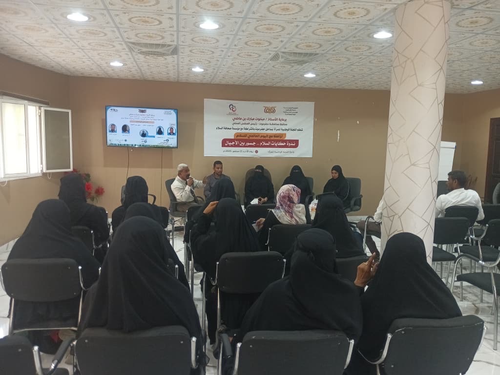 بمناسبة اليوم العالمي للسلام، نظمت مؤسسة صحافة السلام بالشراكة مع اللجنة الوطنية للمرأة بساحل حضرموت ندوة حوارية بعنوان “حكايات السلام .. جسور بين الأجيال” تحت شعار “حكاياتنا خطواتنا للسلام”، وذلك بمشاركة نخبة من المتحدثين والمهتمين بالشأن المجتمعي والشبابي في مدينة المكلا جنوبي اليمن.